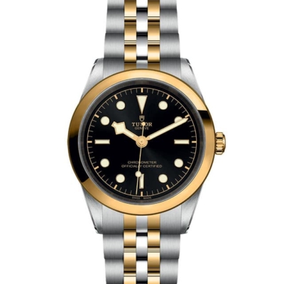– Screw-down winding crown with the TUDOR rose in relief. Steel covered by a 0.1mm 18 ct yellow gold cap